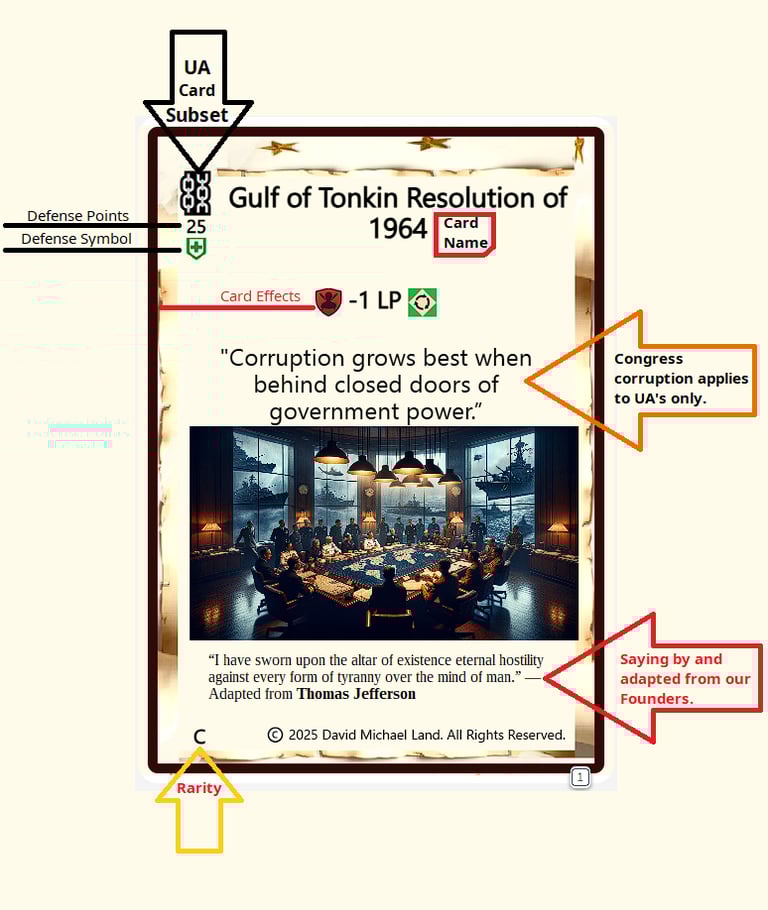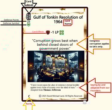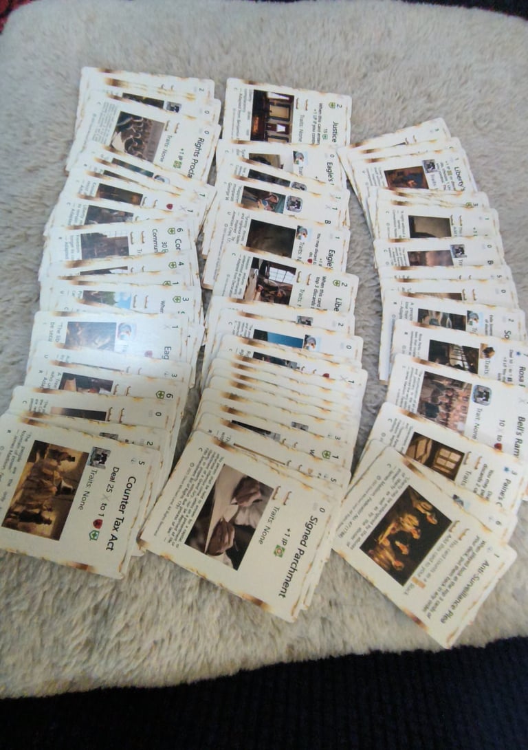Players build decks, generate Independence Points (IP), and fight across multiple paths to victory.